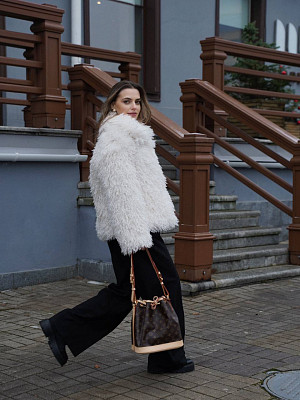 Это пальто — не просто красивый элемент гардероба, а настоящее воплощение нежности и роскоши. Легкое и уютное, оно прекрасно подходит для любого случая: будь то повседневная прогулка, деловая встреча или вечерний выход. Эффектный крой и универсальный стиль позволяют создать как романтичный и элегантный образ, так и более строгий и современный.