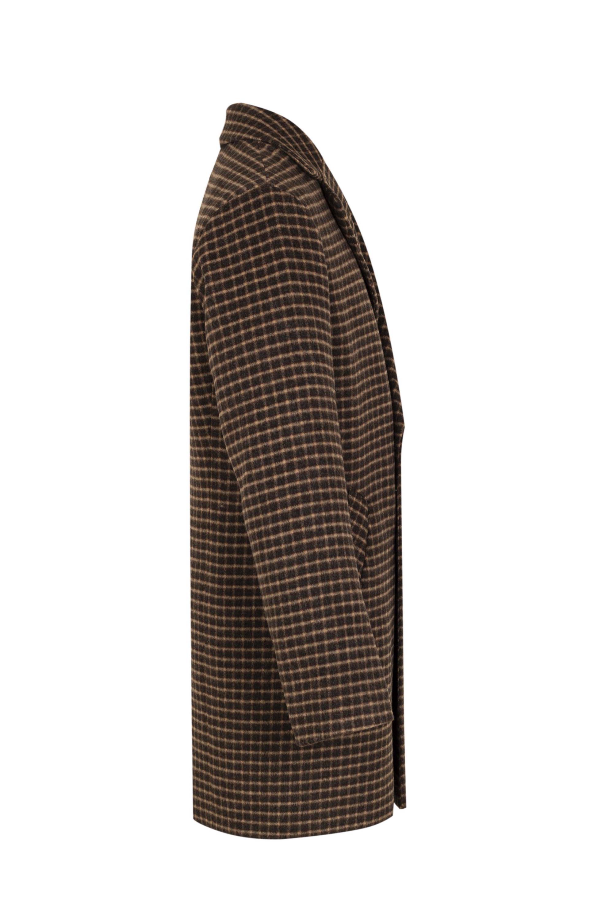 Пальто мужское демисезонное, двубортное, полуприлегающего силуэта, длиной выше уровня колена, на подкладке. По спинке средний шов с отлетной шлицей. Перед с прорезными карманами-листочкой и втачными концами. Застежка по переду на петли/пуговицы. Рукав втачной, двухшовный, длинный. Воротник пиджачный.