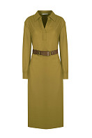 Платье женское, прямого силуэта. Длинной ниже колена. Воротник рубашечного типа. Рукав втачной с притачной манжетой и планкой, застежка на 2 петли и пуговицы. На переде нагрудные вытачки и планка. По шву притачивания кокетки спинки встречная складка. В нижней части боковых швов разрезы. В комплект к платью пояс НЕ ВХОДИТ!