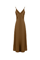 Платье расширенное к низу, длинное, без рукавов, на регулируемых бретелях. Горловина и проймы спинки окантованы.