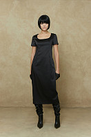 Платье женское полуприлегающего силуэта, длиной ниже колена. В среднем шве спинки застежка на потайную молнию и шлица по низу. Рукав короткий.
