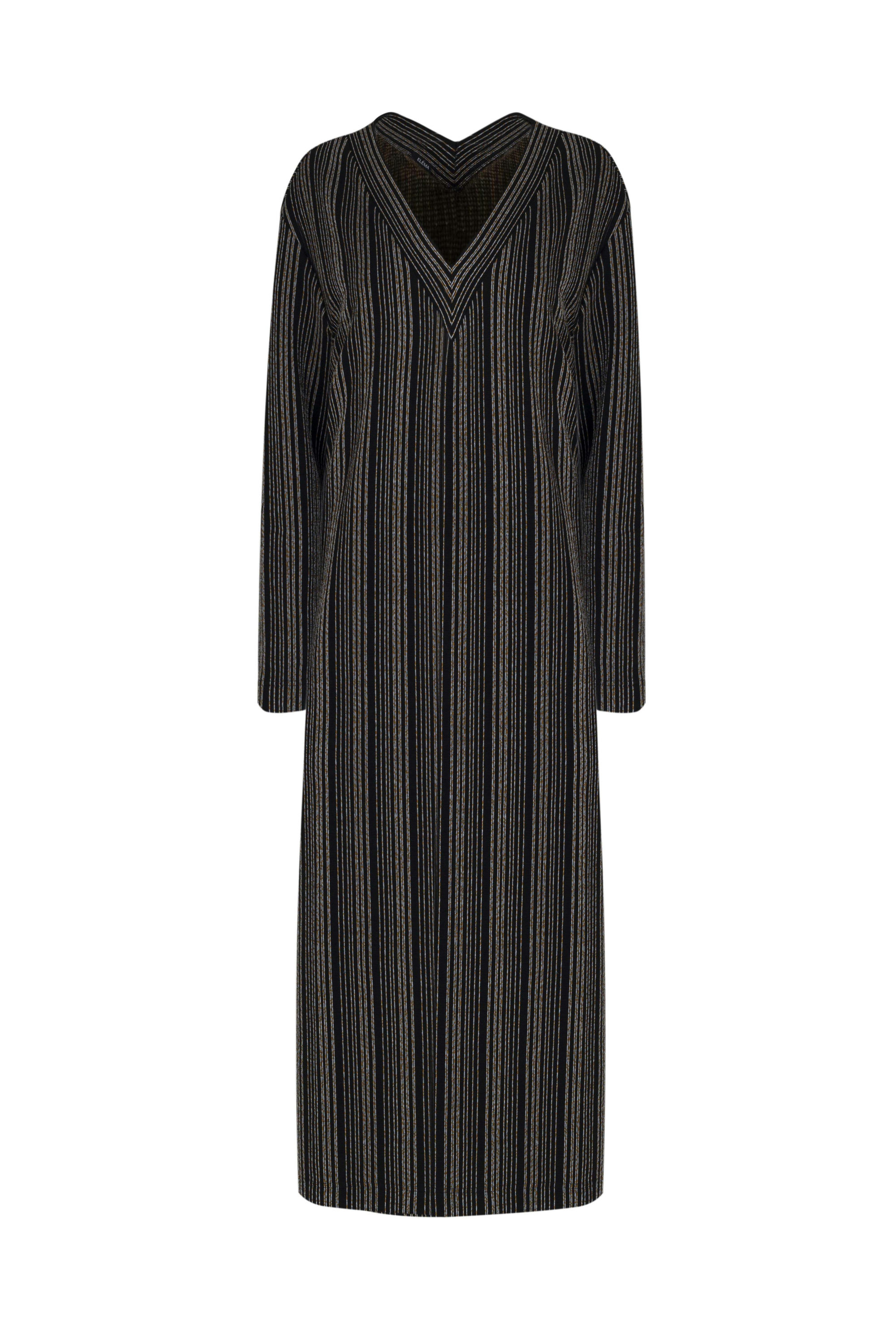 Платье женское трикотажное, прямого силуэта длинное. По переду V – образный вырез. В нижней части левого бокового шва разрез. Рукава втачные, спущенная линия плечам.