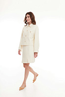 Юбка женская с отлетной подкладкой по низу, длиной выше колена. В верхней части среднего шва заднего полотнища потайная молния. Перед с декоративными листочками и пуговицами на ножке, в швах разрезы по низу.