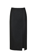 Юбка женская, прямого силуэта, длиной ниже колена. Застежка на потайную молнию в боковом шве. Юбка с разрезом на переде и на подкладке.