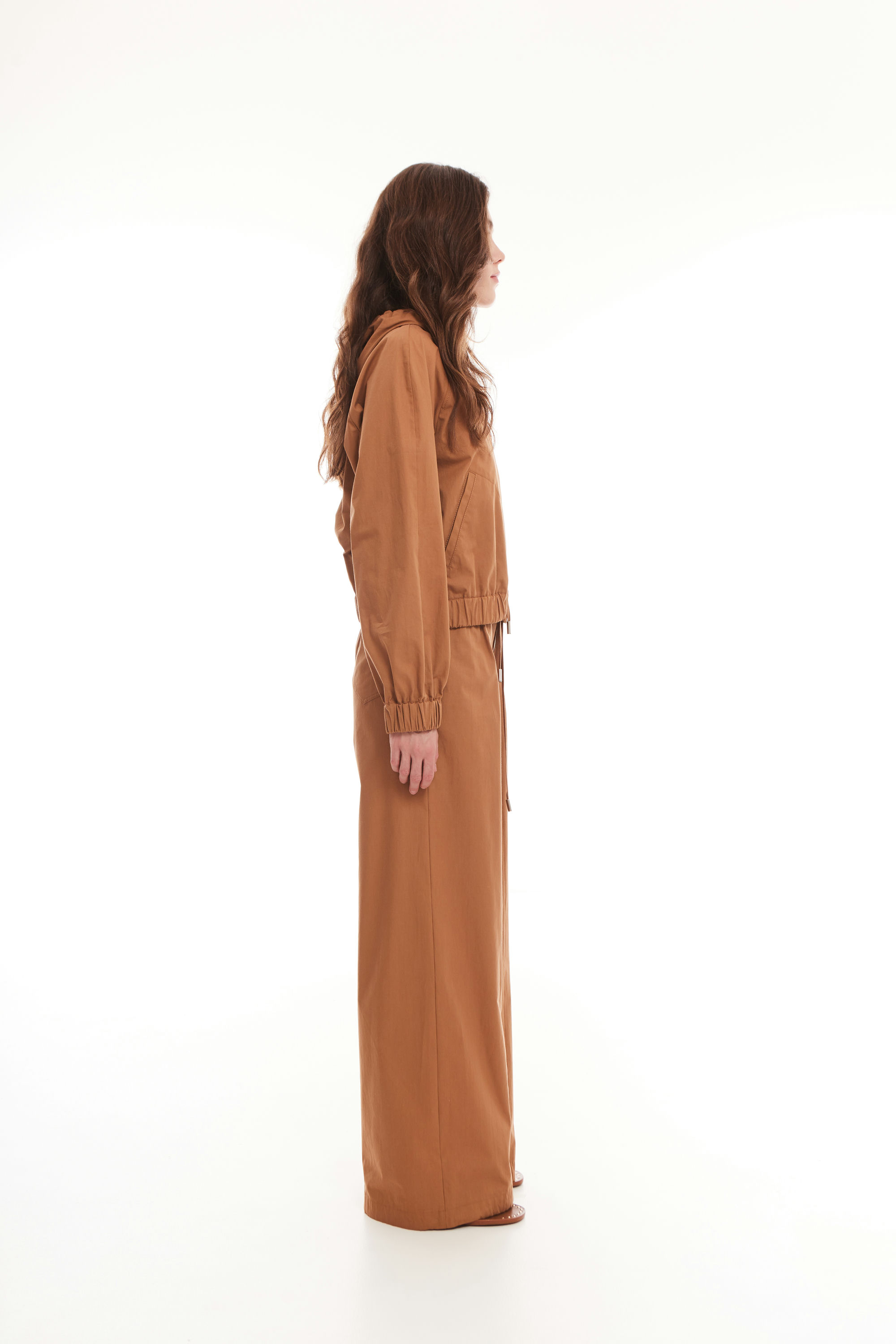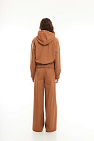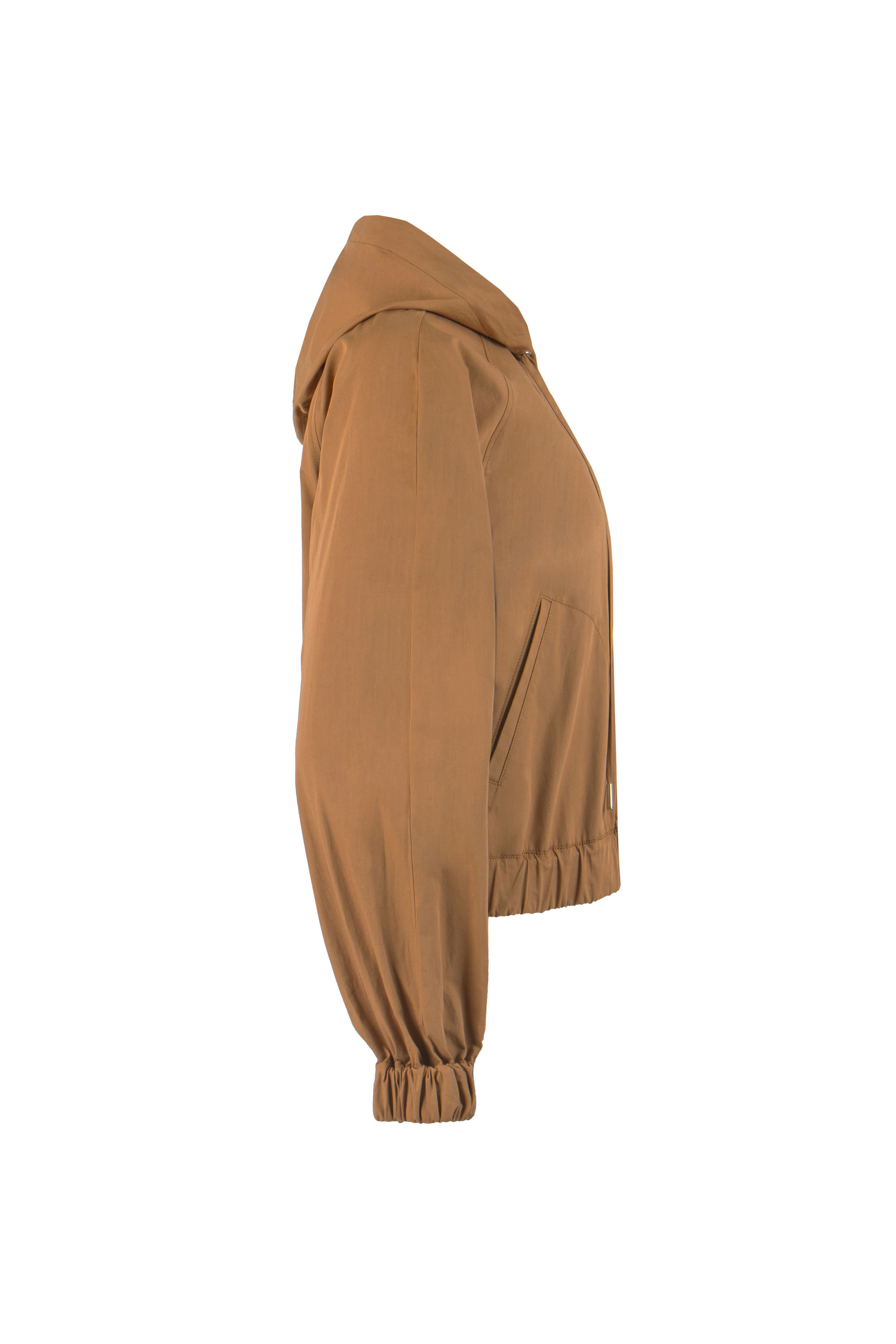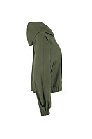 Жакет женский, длиной до уровня бедра, с капюшоном, притачным поясом на резинке по низу. По переду застежка на тесьму-молнию, карманы с листочкой с втачными концами. Рукава – реглан, с притачной манжетой по низу на резинке.
